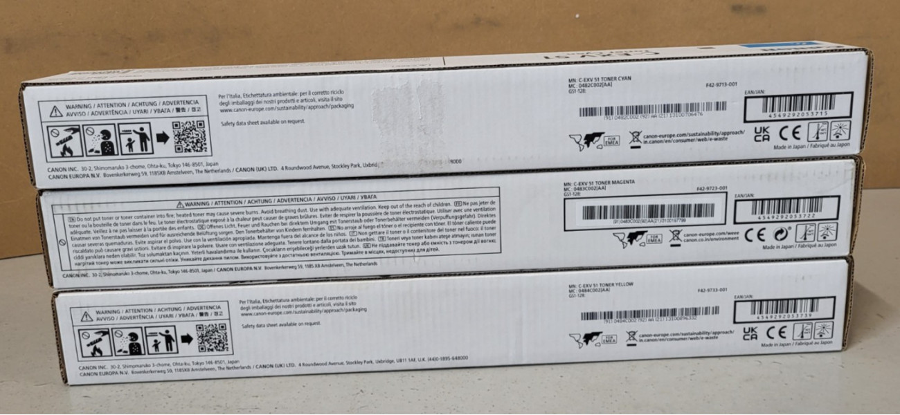 3 Toner Canon C-EXV51 0482C002 0483C002 0484C002 Neu OVP Original C5535 .