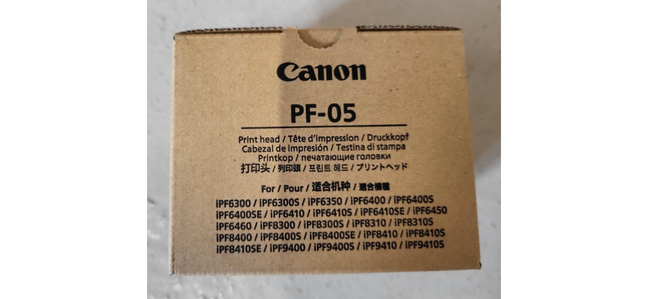 Sie bieten hier auf einen Original Druckkopf PF-05 für folgende Modelle: Canon iPF6300, iPF6300S, iPF6350, iPF6400, iPF6400S, iPF6400SE, iPF6410, iPF6410S, iPF6410SE, iPF6450, iPF6460, iPF8300, iPF8300S, iPF8310, iPF8310S, iPF8400, iPF8400S, iPF8400SE, iPF8410, iPF8410S, iPF8410SE, iPF9400, iPF9400S, iPF9410 iPF9410S