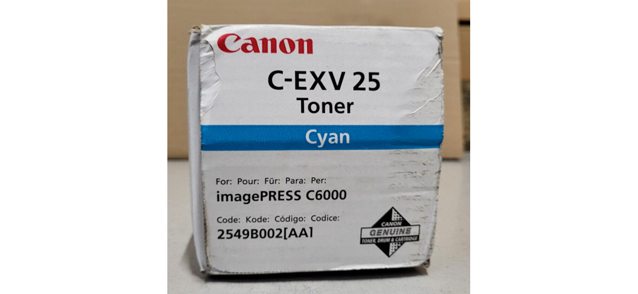 Sie bieten hier auf einen Original Toner Canon C-EXV 25 der Farbe Cyan für folgende Modelle: Canon imagePRESS C6000