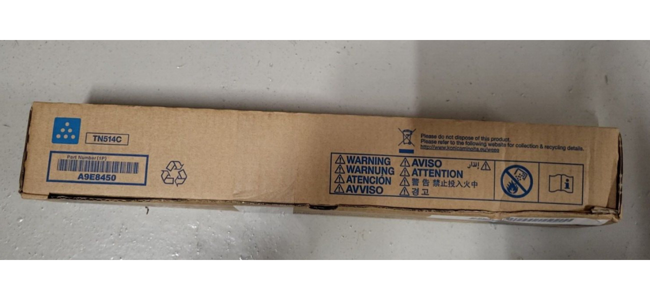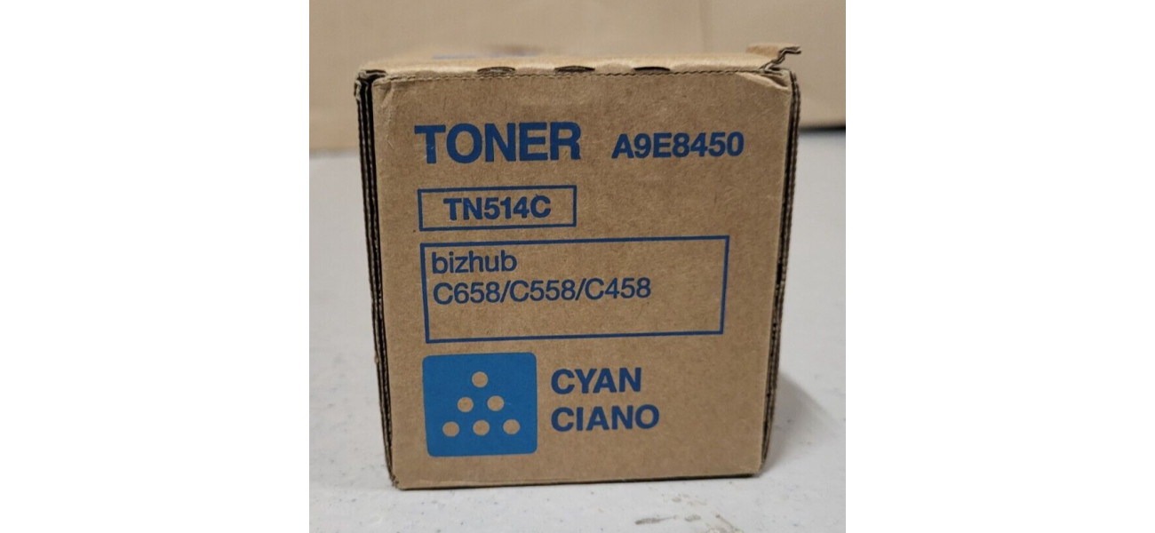 Sie bieten hier auf einen Original Toner TN514C Konica Minolta der Farbe Cyan für folgende Modelle: Konica Minolta bizhub C658, C558, C458 1x Toner TN514C Cyan Konica Minolta A9E8450, 26.000 Seiten Der Toner ist neu und originalverpackt.   Die Originalverpackung ist nicht geöffnet und befindet sich in einem guten Zustand. (s. Originalfotos)   Der Versand innerhalb Deutschlands ist kostenlos. Der Käufer bekommt eine Rechnung mit ausgewiesener Mehrwertsteuer. Bei Fragen kontaktieren Sie mich gerne telefonisch oder per Mail! (s. rechtliche Informationen des Käufers)