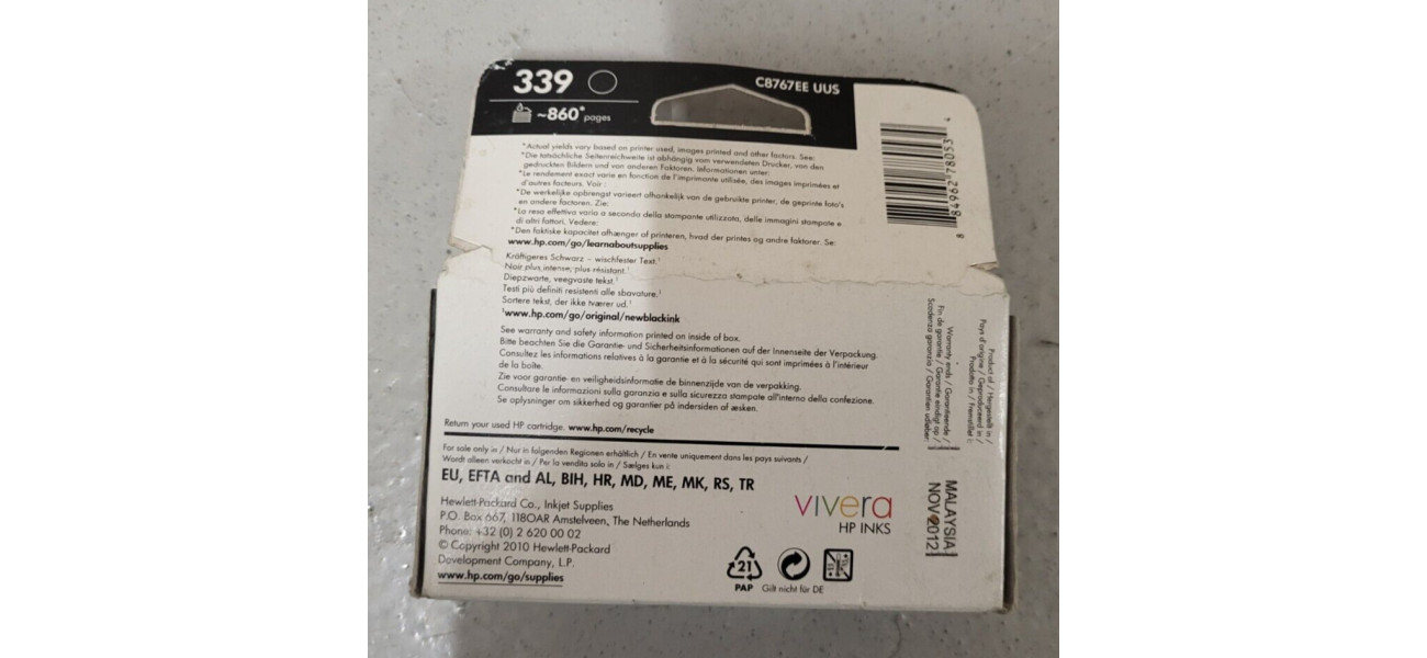 Sie bieten auf einer Original Druckpatrone 339 für folgende Modelle: HP Deskjet 5740, 5745, 5940, 6520, 6540, 6540d, 6620, 6840, 6940, 6980, 9800, 9800d