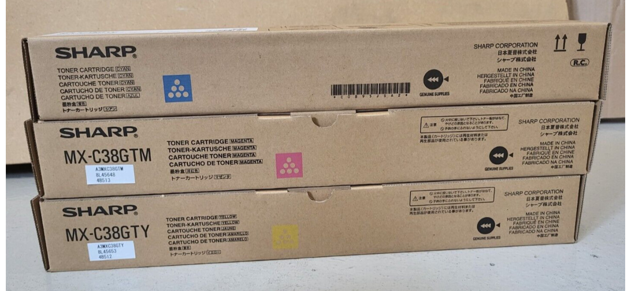 3 Toner Sharp MX-C38GTC MX-C38GTY MX-C38GTM Neu OVP A-Ware Original MX-C310 MwSt