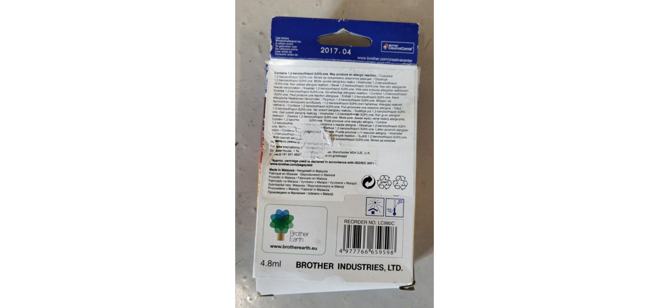 1 x Tintenpatrone Brother LC980C Cyan, MHD: 04.2017, 4,8 ml