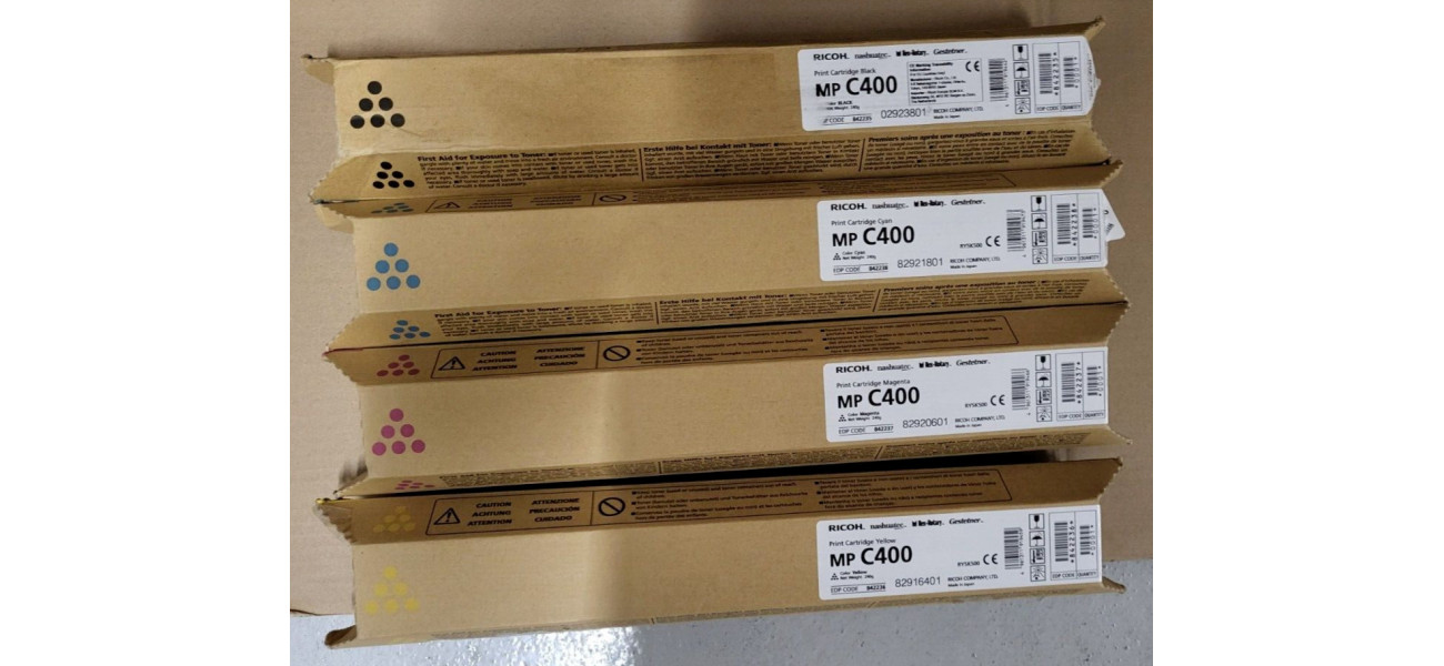 Sie bieten hier auf einen Satz, bestehend aus 4 Original Ricoh Toner MP C400 für die Modelle: Ricoh Aficio MP C300, Ricoh Aficio MP C400, Ricoh Aficio MP C401