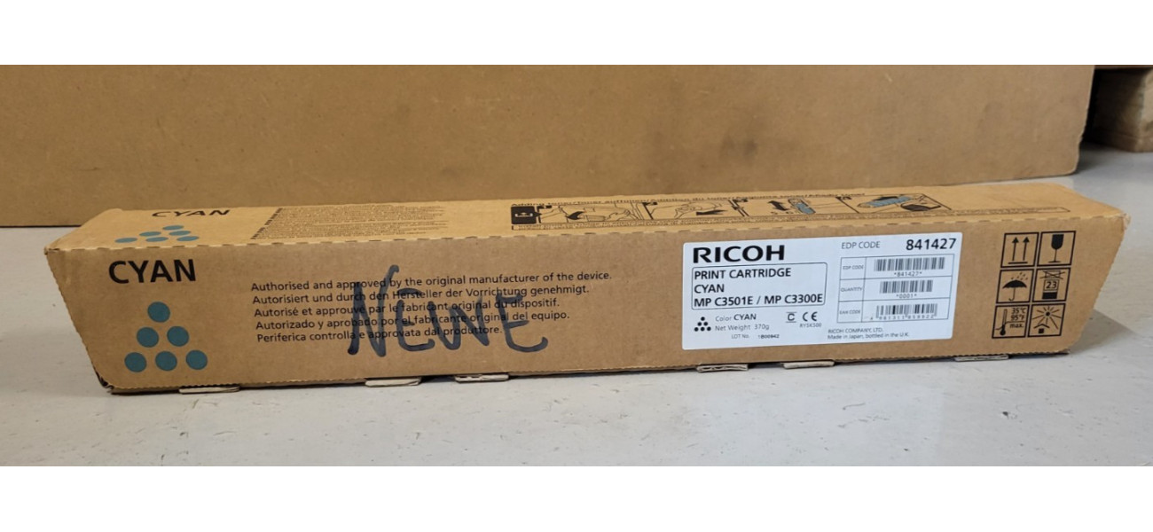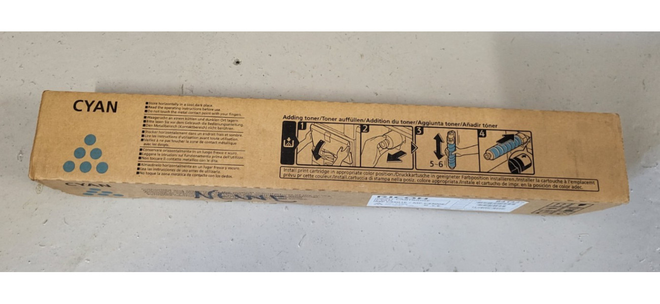 Sie bieten hier auf einen Original Toner Ricoh MP C3501E Cyan für folgende Modelle: Ricoh Aficio MP C2800, MP C3300, MP C3501, MP C3001