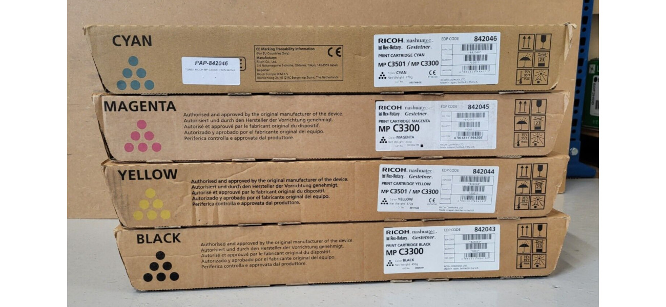 • 4 Toner Ricoh MP C3501 / MP 3300 842043 842046 842045 842044 CMYK Neu OVP A-Ware