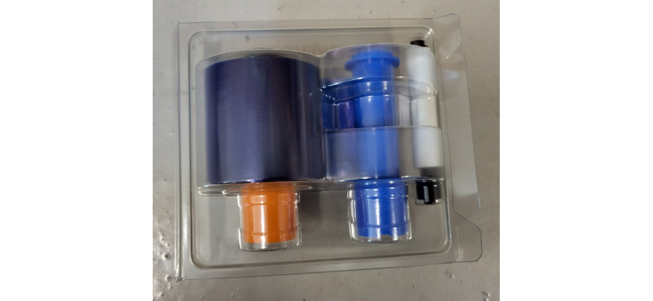 1x Fargo Farbband 045210 DTC Color Ribbon, 500 Kartenseiten, Farbbandtyp: YMCFK (Yellow, Magenta, Cyan, Fluoreszierend, Schwarz)