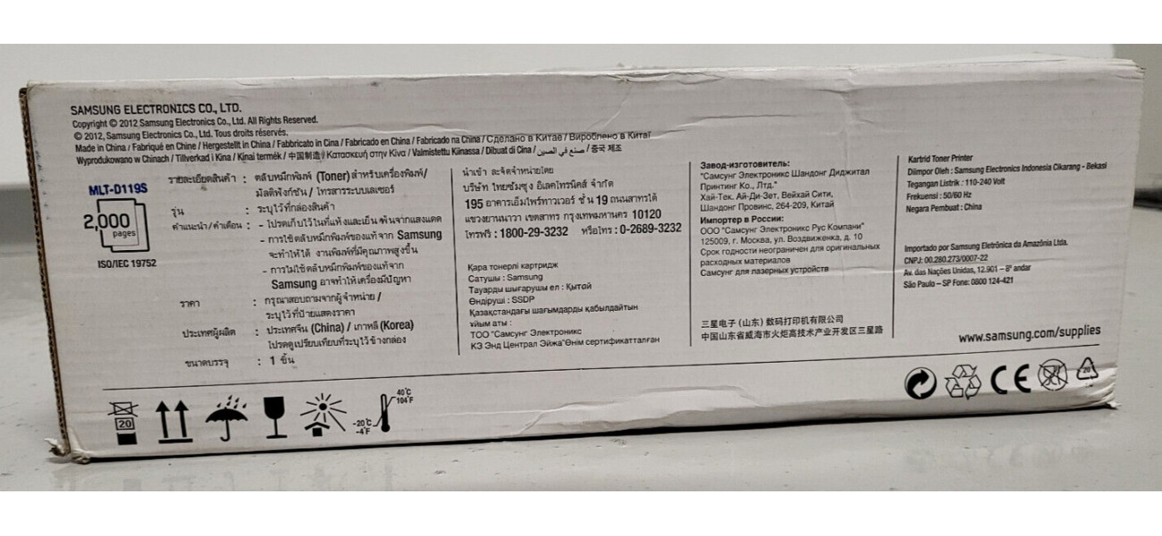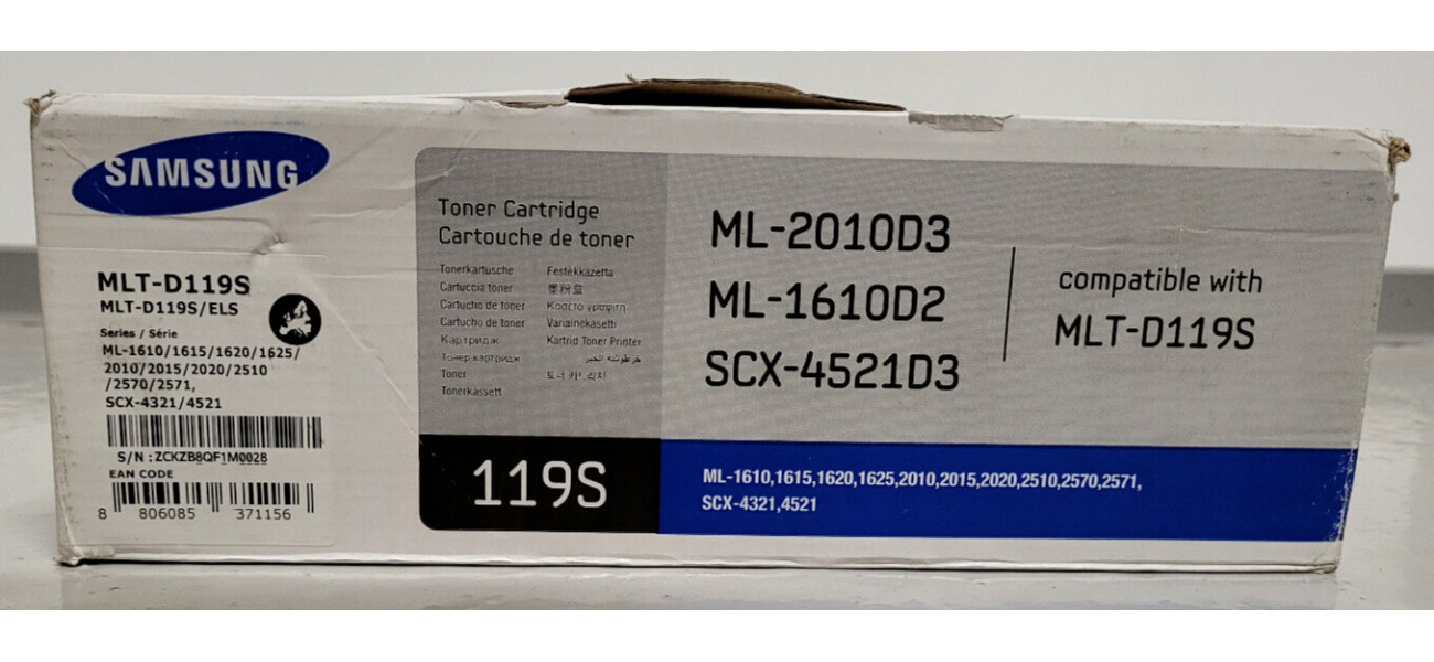 Sie bieten hier auf einen Original Toner MLT-D119S für folgende Modelle: Samsung ML-1610, 1615, 1620, 2010, 2015, 2020, 2510, 2570, 2571, SCX-4321, 4521