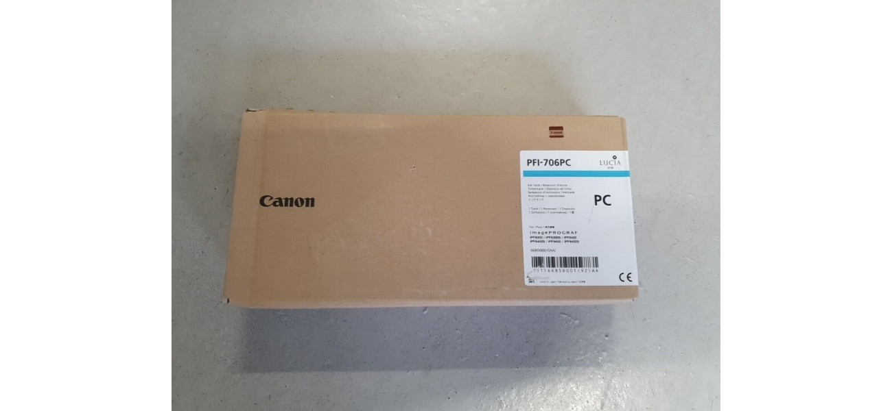 Sie bieten hier auf eine neue Tintenpatrone Canon PFI-706PC in der Farbe Photo Cyan für folgende Modelle: Canon imagePROGRAF iPF8400, iPF9400, iPF9400S